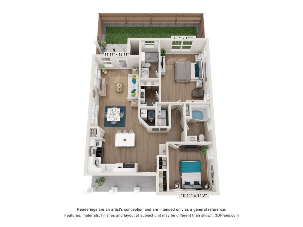 Unit Type2 Bed / 2 BathFloor Area1,105 sq. ft.Available12/19/2025Starting at$2,036 / mo